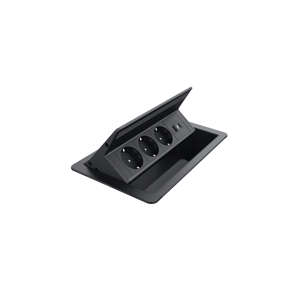 FLIP UP PUSH 3xSHUKO SOCKET+1xUSB A/C 20W, BLACK